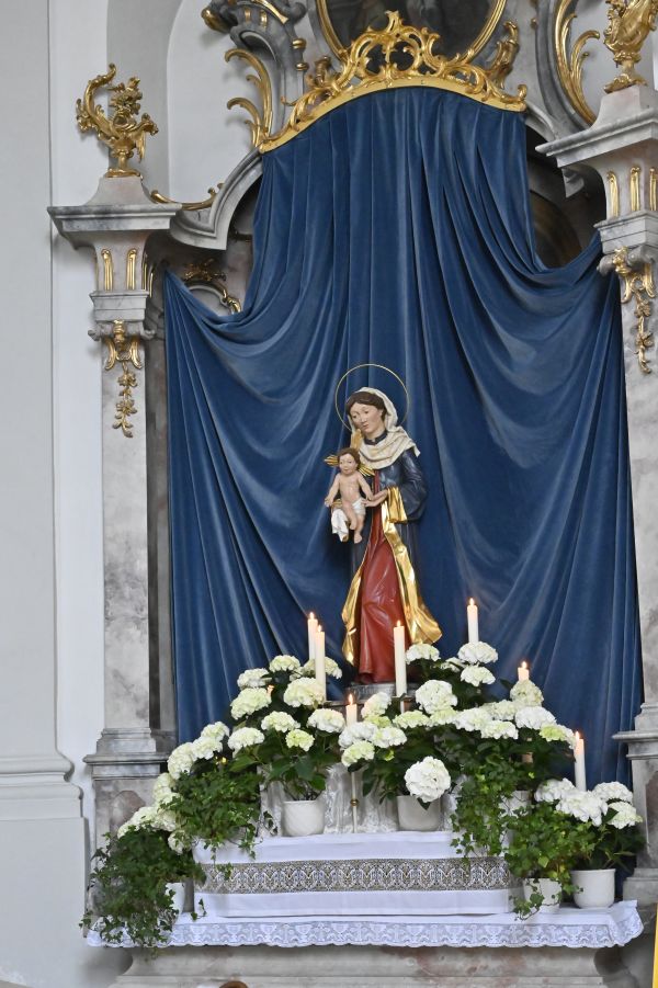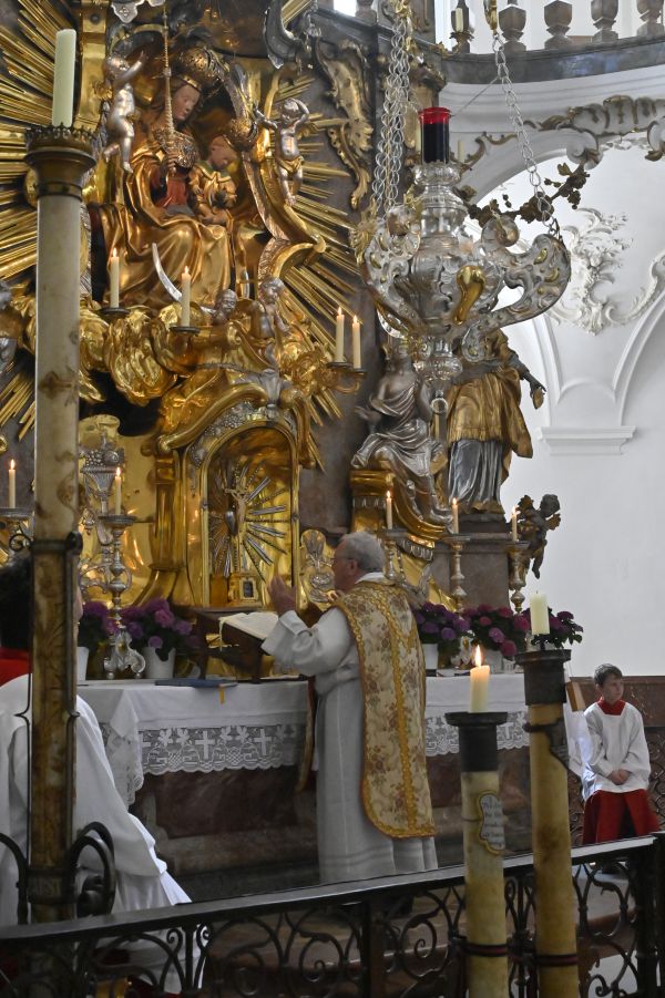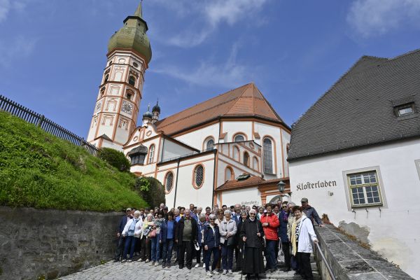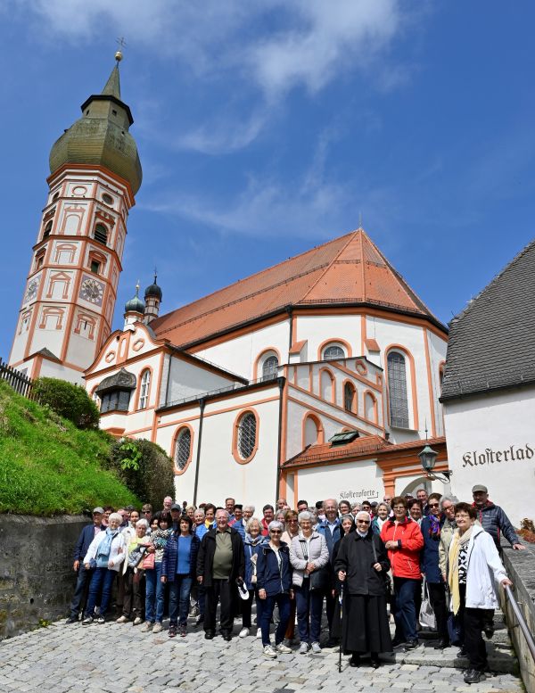 Vikar Sepp Schmölzer feierte mit einer weiteren Pilgergruppe aus Schmiechen den Wallfahrtsgottesdienst in der wunderschönen Wallfahrtskirche Andechs mit dem Gnadenbild der Gottesmutter am Hochaltar. Anschließend blieb genug Zeit den Klosterberg zu erkunden, bevor wir zum Mittagessen zum Ammersee ins "Brauhaus Herrsching" fuhren. Weiter führte uns die Fahrt nach Seehausen am Staffelsee in die Pfarrkirche zum Hl. Michael. Nach einer kurzen Andacht stärkten wir uns im "Gasthof zum Stern" .