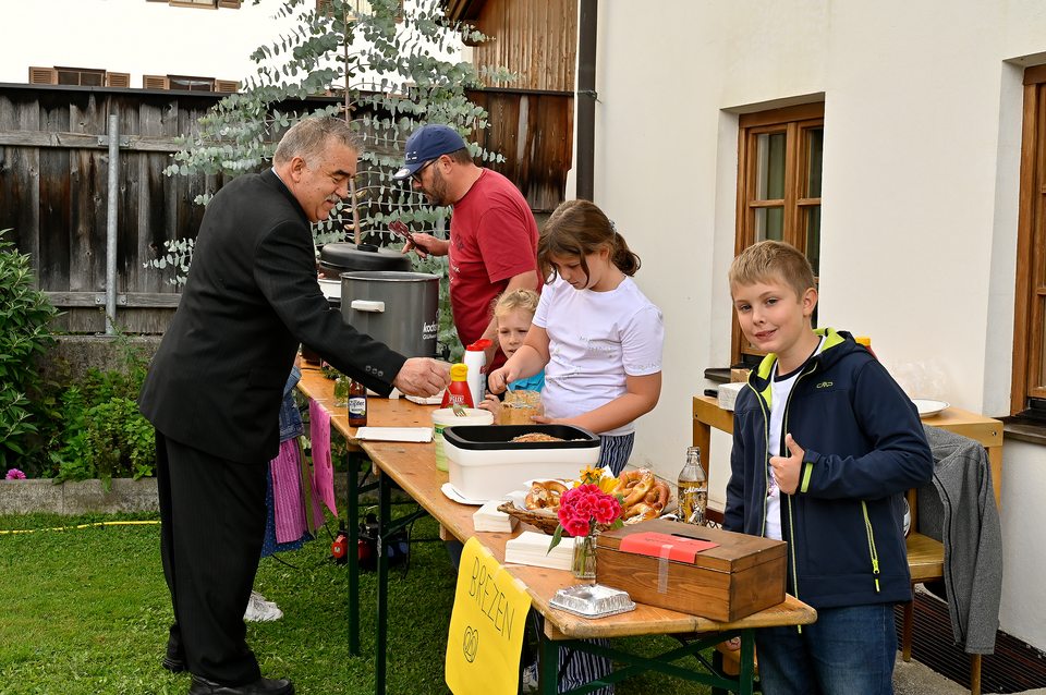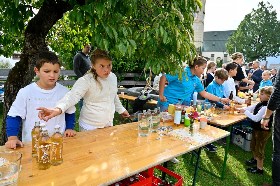 Der Himmel hat es gut gemeint am Erntedanksonntag! Nach den Wolken kam der Sonnenschein! Nach dem Gottesdienst mit P. Sepp und der Prozession konnten die Ministranten viele Besucher im Widumgarten begrüßen. Voll Eifer und Freude wurden die Gäste mit Würstl, Kuchen und Getränken verwöhnt.